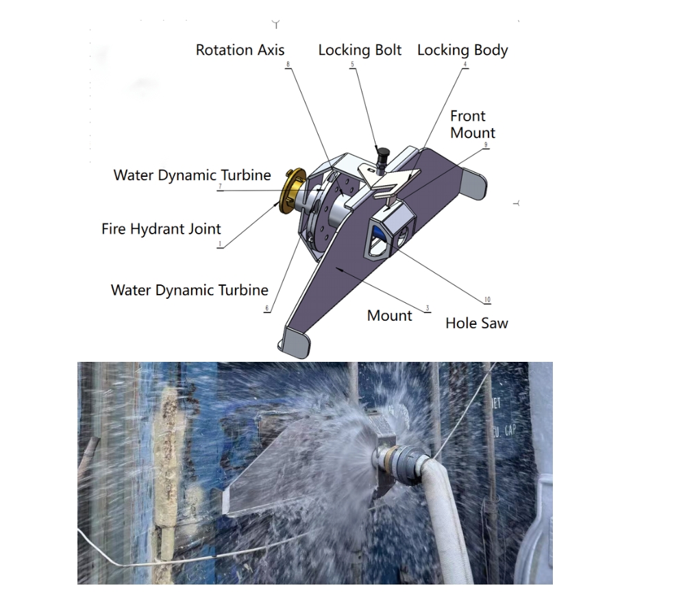 DescriptionWaterkey system is an advanced fire fighting device. The working principle is to use water pressure of regular fire hose on vessels, to drill and breakdown the surface of staked containers